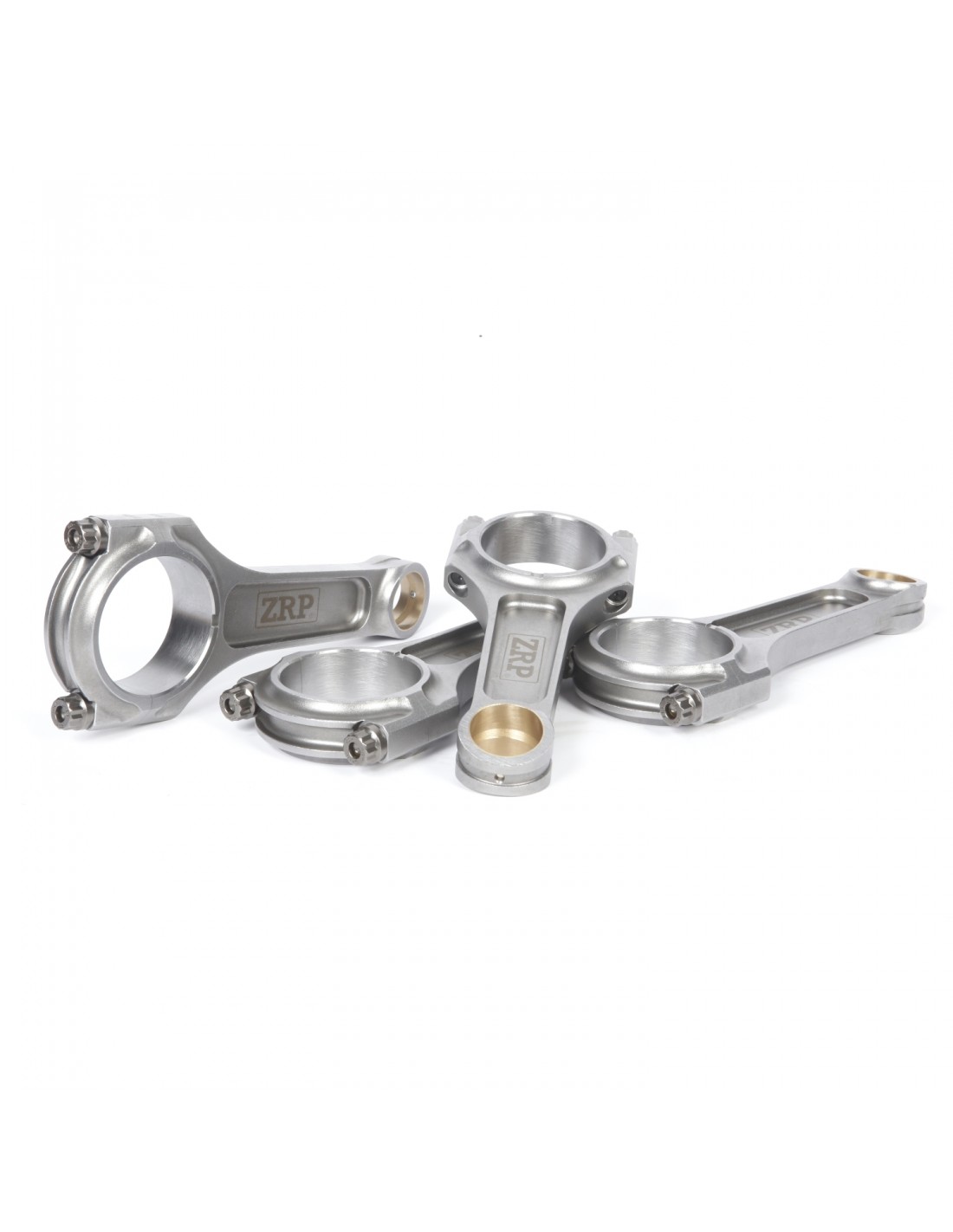 Audi / VW 1.8L Turbo 20v (225PS) I-Beam Connecting rods are manufactured from 4340 high tensile steel, they are designed for high performance, extreme durability and extra rigidity. These rods have a Tapered Pin End, so they are compatible with OEM pistons. The bushings made from AMPCO 18 material for excellent resistance to wear and fatigue and have radial groove for oil reservoir. They are shot peened to relieve stress from the material and multi-stage heat treated to increase rigidity. The tight tolerances in the production process, ensure a perfect fitment while optimizing the oil clearances. Bend and twist is tightly controlled.Each rod includes ARP 2000 cap fasteners that are rated at 220,000psi, optional ARP L19 material 260.00psi available as an upgrade and the whole kit is supplied with ARP moly and full fitting instructions.