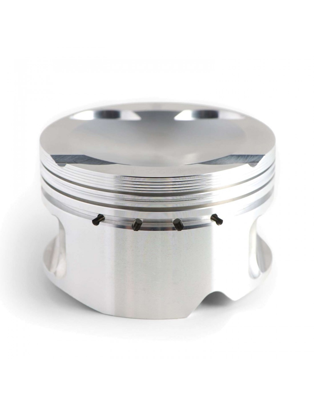 The Audi / VW 2.0L TFSI pistons are developed for mild to high tuning, mainly for road or club race cars that want to develop their engine for high mileage and/or street use. Designed by ZRP engineers and manufactured in Germany from 4032 (T6) high-silicon, low-expansion alloy. This allows the engine builder to run a closer piston to bore clearance thus producing a better seal. This minimizes the slapping noise during cold start, common place among engines running forged pistons, providing a quite operation and low oil consumption.We have chosen a Full round skirt design with bottom reinforcing band, with oversize and deeper valve pockets to allow high lift camshaft profiles to be used. They have Offset pins for quiet operation and the wrist pins are made from 9310 alloy. Other features include Anti-detonation grooves to protect the first rings, gas pressure accumulator groove for better ring seal and vibration relieve. Premium Japanese quality 1.00mm x 1.20mm x 2.80mm ring package included.