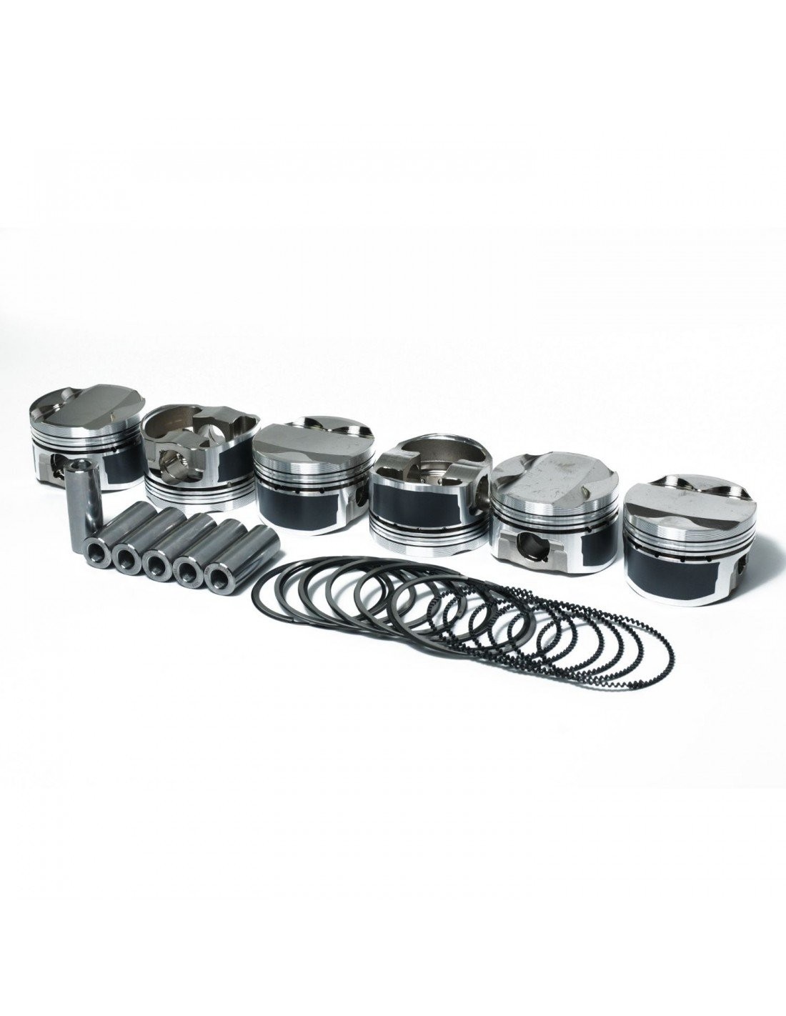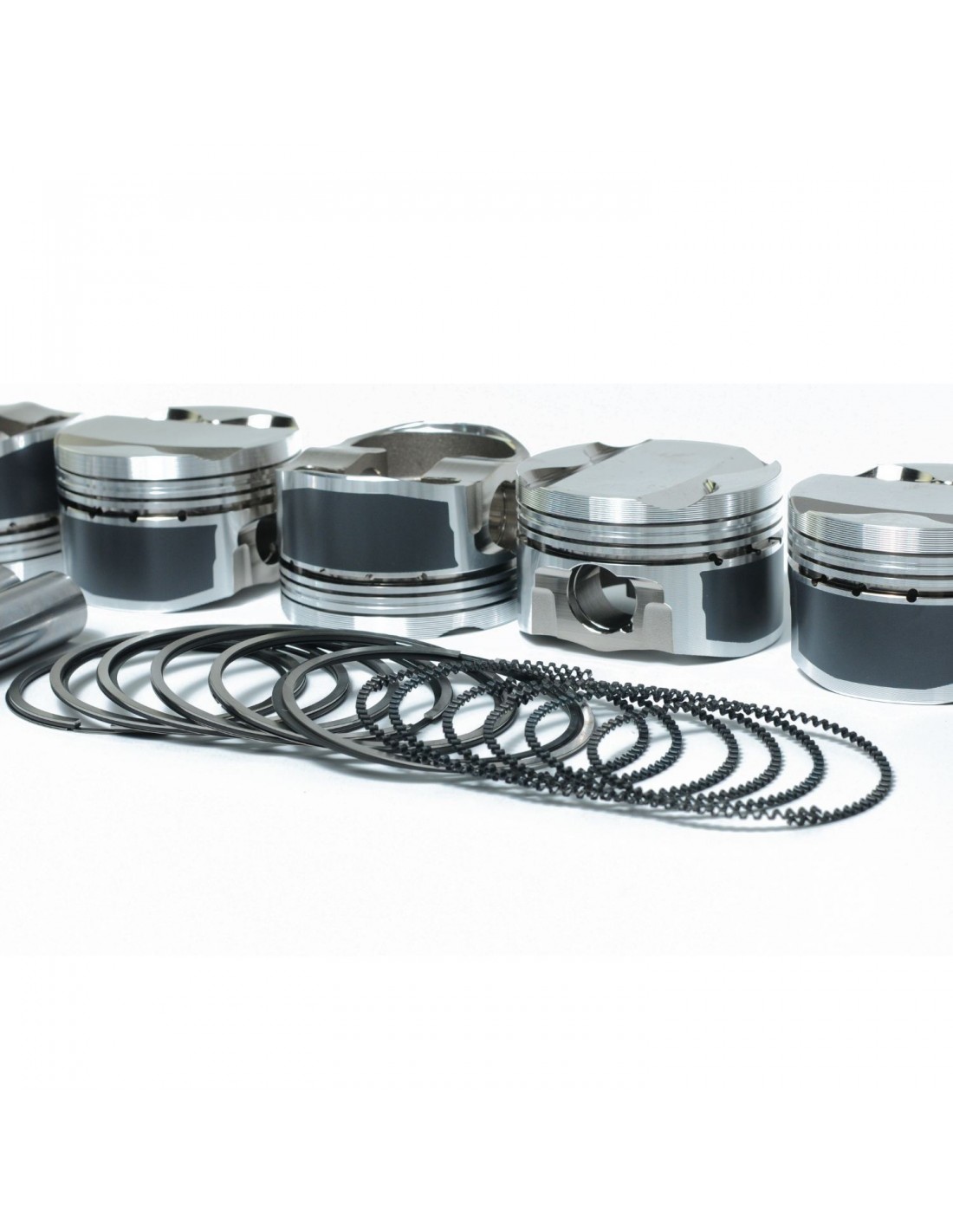 The pistons include upgraded pins with 5.34mm wall thickness and Armor Plating piston coating to reduce the ill effects of high heat in turbo and nitrous/methanol setups. Each ZRP piston in this application includes an ArmorGlide anti-friction skirt coating to minimize scuffing during break-in and reduce friction on the cylinder wall. Our pistons are made from dedicated in-house forgings, providing a lightweight piston with superior strength and optimal design. Also, the valve pockets are bigger and deeper than OEM in order to accept high-lift camshafts. Moreover, the pistons have offset pins and Gas-Pressure and Anti-Detonation grooves to prolong ring longevity!
