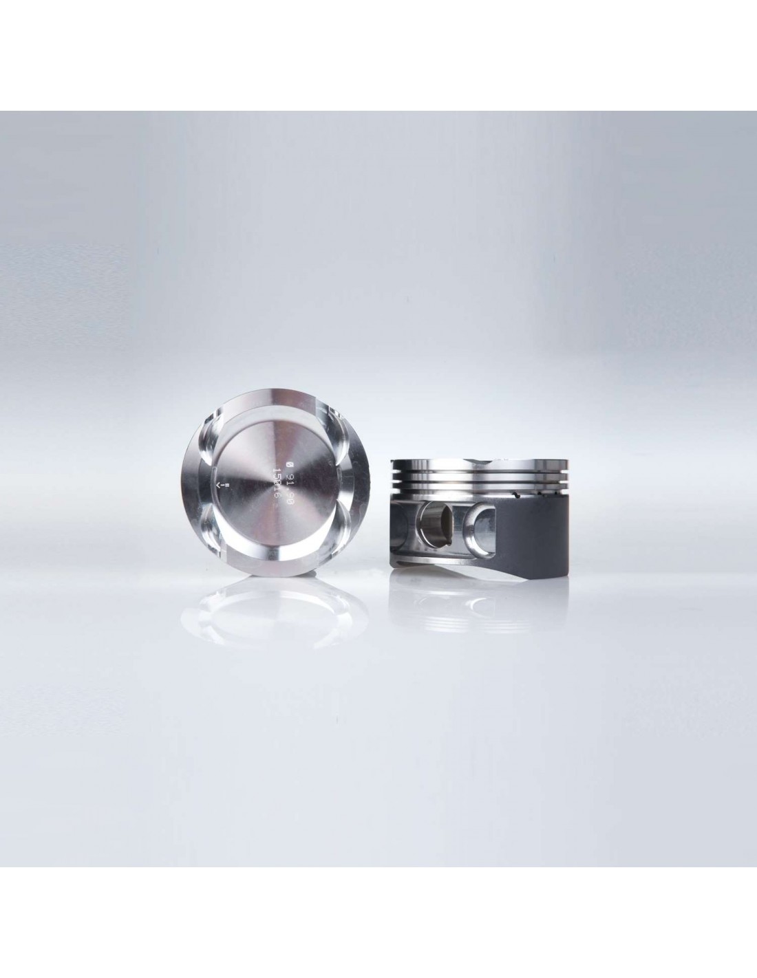 The Ford Cosworth pistons are developed for mild to high tuning, mainly for road or club race cars that want to develop their engine for high mileage and/or street use. Designed by ZRP engineers and manufactured in Germany from 4032 (T6) high-silicon, low-expansion alloy. This allows the engine builder to run a closer piston to bore clearance thus producing a better seal. This minimizes the slapping noise during cold start, common place among engines running forged pistons, providing a quite operation and low oil consumption.We have chosen a Full round skirt design with bottom reinforcing band, with oversize and deeper valve pockets to allow high lift camshaft profiles to be used. They have Offset pins for quiet operation and the wrist pins are made from 9310 alloy. Other features include Anti-detonation grooves to protect the first rings, gas pressure accumulator groove for better ring seal and vibration relieve. Premium Japanese quality 1.50mm x 1.20mm x 2.50mm ring package included.