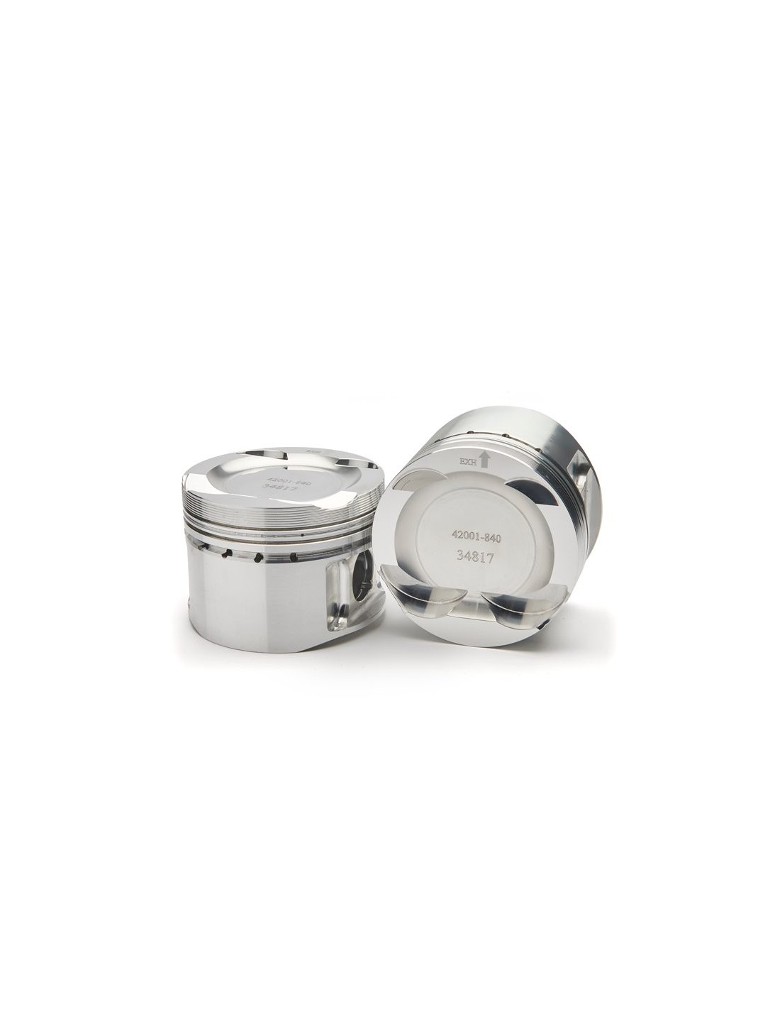 The Lancia Delta Integrale 16v pistons are developed for mild to high tuning, mainly for road or club race cars that want to develop their engine for high mileage and/or street use. Designed by ZRP engineers and manufactured in Germany from 4032 (T6) high-silicon, low-expansion alloy. This allows the engine builder to run a closer piston to bore clearance thus producing a better seal. This minimizes the slapping noise during cold start, common place among engines running forged pistons, providing a quite operation and low oil consumption.We have chosen a Full round skirt design with bottom reinforcing band, with oversize and deeper valve pockets to allow high lift camshaft profiles to be used. They have Offset pins for quiet operation and the wrist pins are made from 9310 alloy. Other features include Anti-detonation grooves to protect the first rings, gas pressure accumulator groove for better ring seal and vibration relieve. Premium Japanese quality 1.00mm x 1.20mm x 2.80mm ring package included.