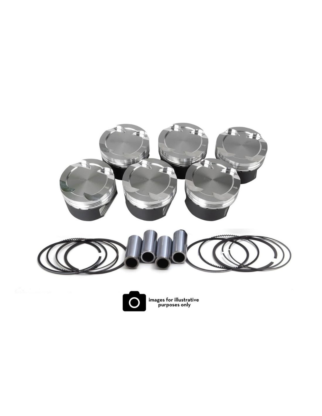 Wossner are regarded by Europe’s leading motor sport engine builders as being the piston of choice when building an engine not only to perform, but to withstand the stresses and duress’s of competition life. Wossner pistons feature a unique Moly coating on the skirts and a grade of 4032 Alloy (T6) which allows the engine builder to run a closer piston to bore tolerance then he might do on another make of piston. This helps remove the slapping noise during cold start, common place among engines running forged pistons due to larger then OE bore clearances. The crowns of the pistons are also mirror polished to better resist detonation on a high performance engine. Mirror polishing allows a more even spread of heat inside the chamber which will help prevent “hot spots” on piston crowns.