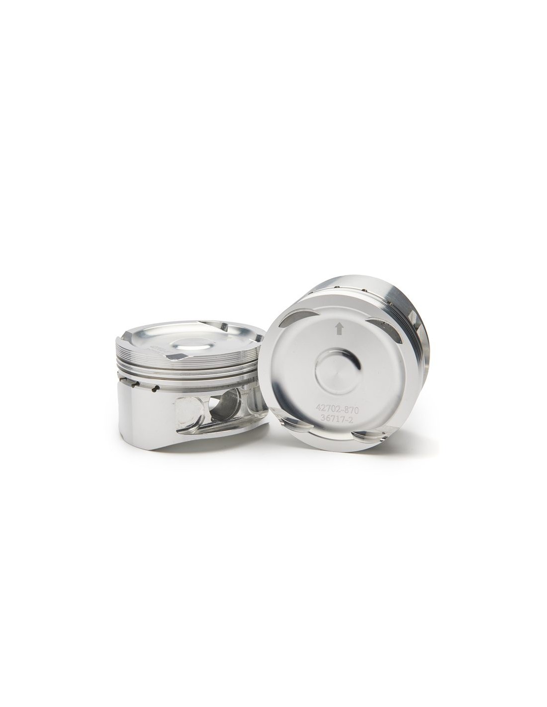 The Opel 2.0L 16v pistons are developed for mild to high tuning, mainly for road or club race cars that want to develop their engine for high mileage and/or street use. Designed by ZRP engineers and manufactured in Germany from 4032 (T6) high-silicon, low-expansion alloy. This allows the engine builder to run a closer piston to bore clearance thus producing a better seal. This minimizes the slapping noise during cold start, common place among engines running forged pistons, providing a quite operation and low oil consumption.We have chosen a Full round skirt design with bottom reinforcing band, with oversize and deeper valve pockets to allow high lift camshaft profiles to be used. They have Offset pins for quiet operation and the wrist pins are made from 9310 alloy. Other features include Anti-detonation grooves to protect the first rings, gas pressure accumulator groove for better ring seal and vibration relieve. Premium Japanese quality 1.00mm x 1.20mm x 2.80mm ring package included.