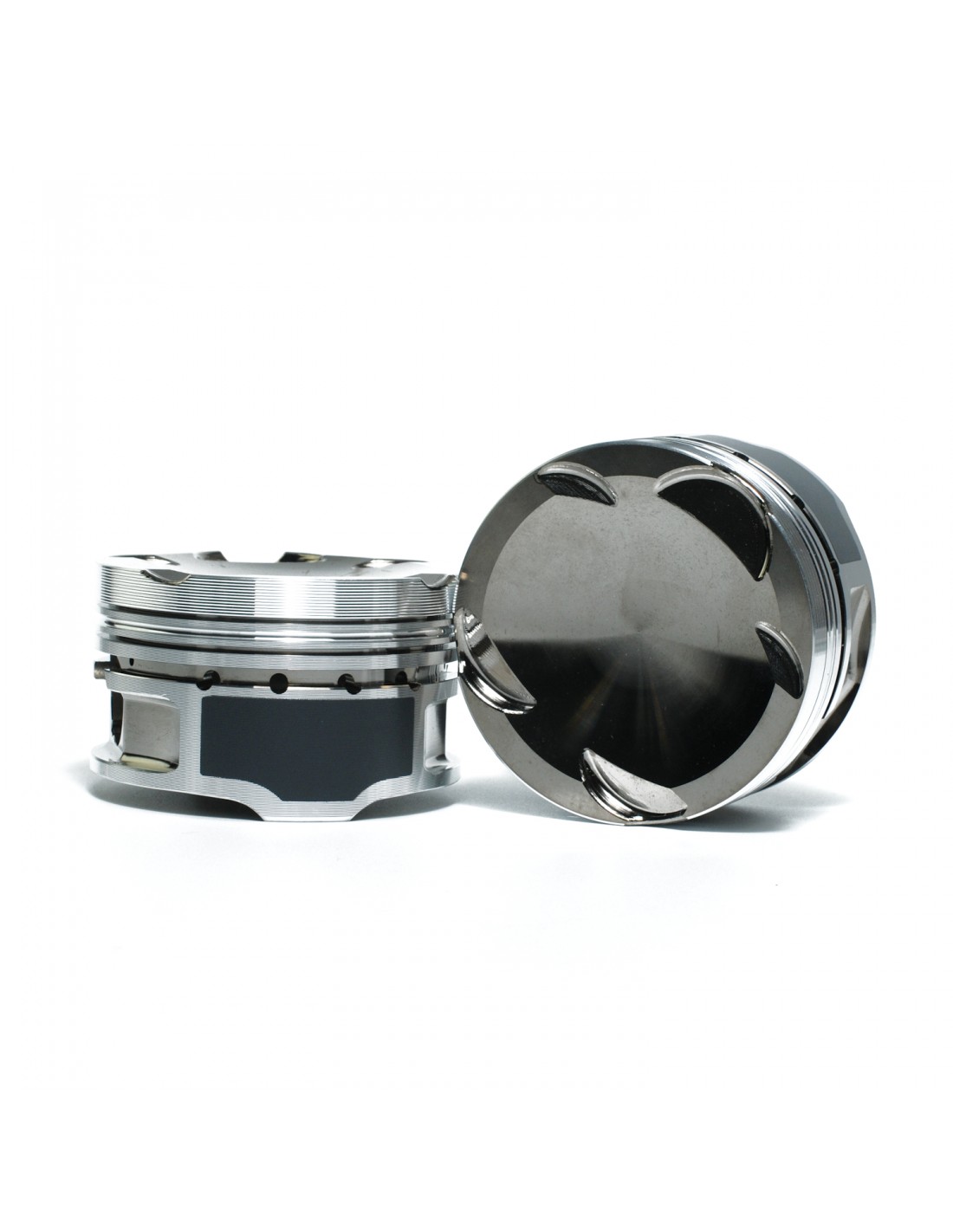 The pistons include upgraded pins with 5.34mm wall thickness and Armor Plating piston coating to reduce the ill effects of high heat in turbo and nitrous/methanol setups. Each ZRP piston in this application includes an ArmorGlide anti-friction skirt coating to minimize scuffing during break-in and reduce friction on the cylinder wall. Our pistons are made from dedicated in-house forgings, providing a lightweight piston with superior strength and optimal design. Also, the valve pockets are bigger and deeper than OEM in order to accept high-lift camshafts. Moreover, the pistons have offset pins and Gas-Pressure and Anti-Detonation grooves to prolong ring longevity!