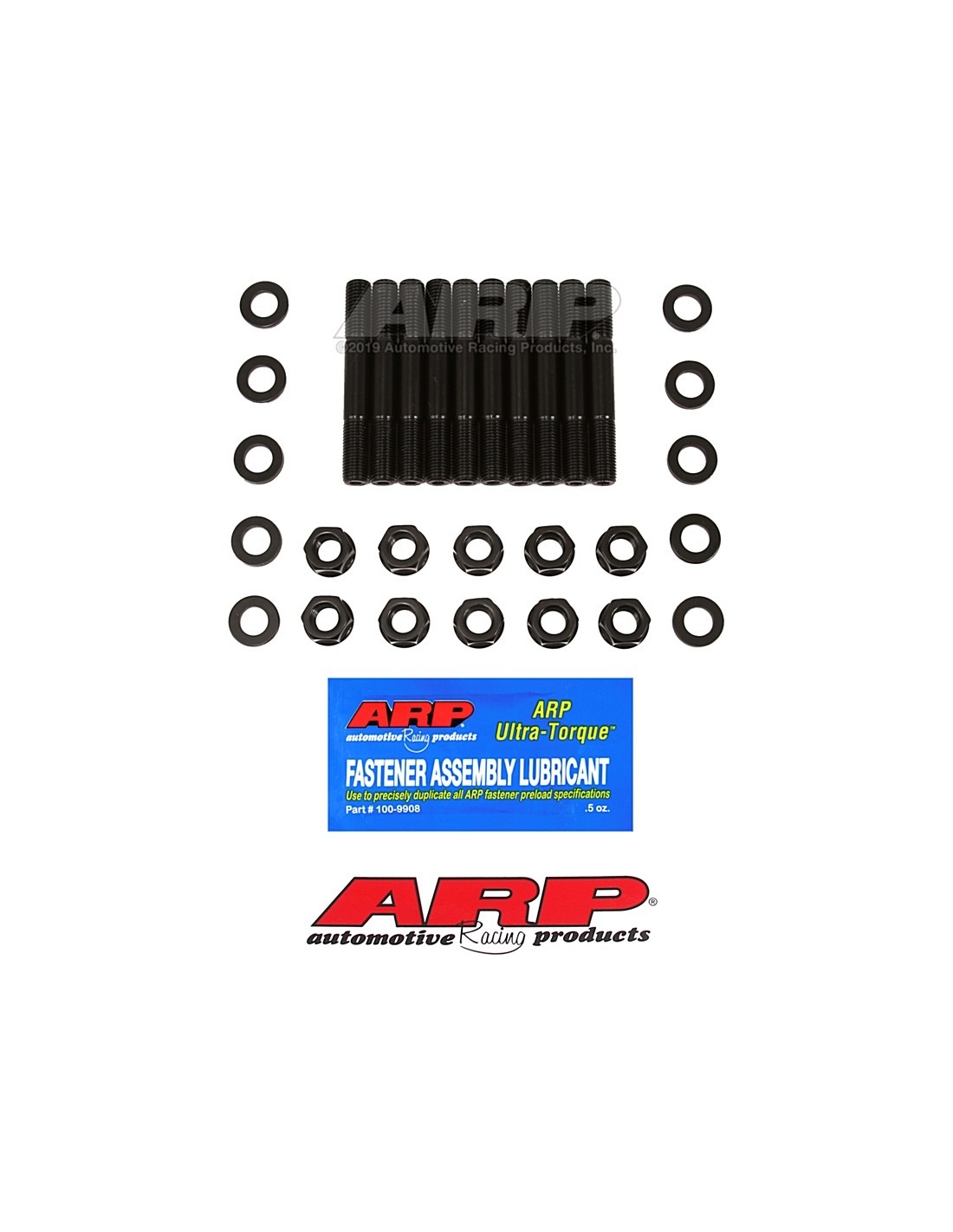 ARP main studs are manufactured from 8740 chrome moly steel, heat-treated to 200,000 psi tensile strength, and precision J-form threads rollad after heat-treat to create a fastener that has threads 2000% stronger than others. Reduce crankshaft flex and main cap fretting with these premium quality main studs. Don't settle for anything less than the best! Main Studs Key Features: •Premium grade 8740 chrome moly steel •200,000 psi tensile strength •J-form rolled threads •Come with parallel washers and nuts All kits come complete with hardened parallel-ground washers and aerospace quality nuts.