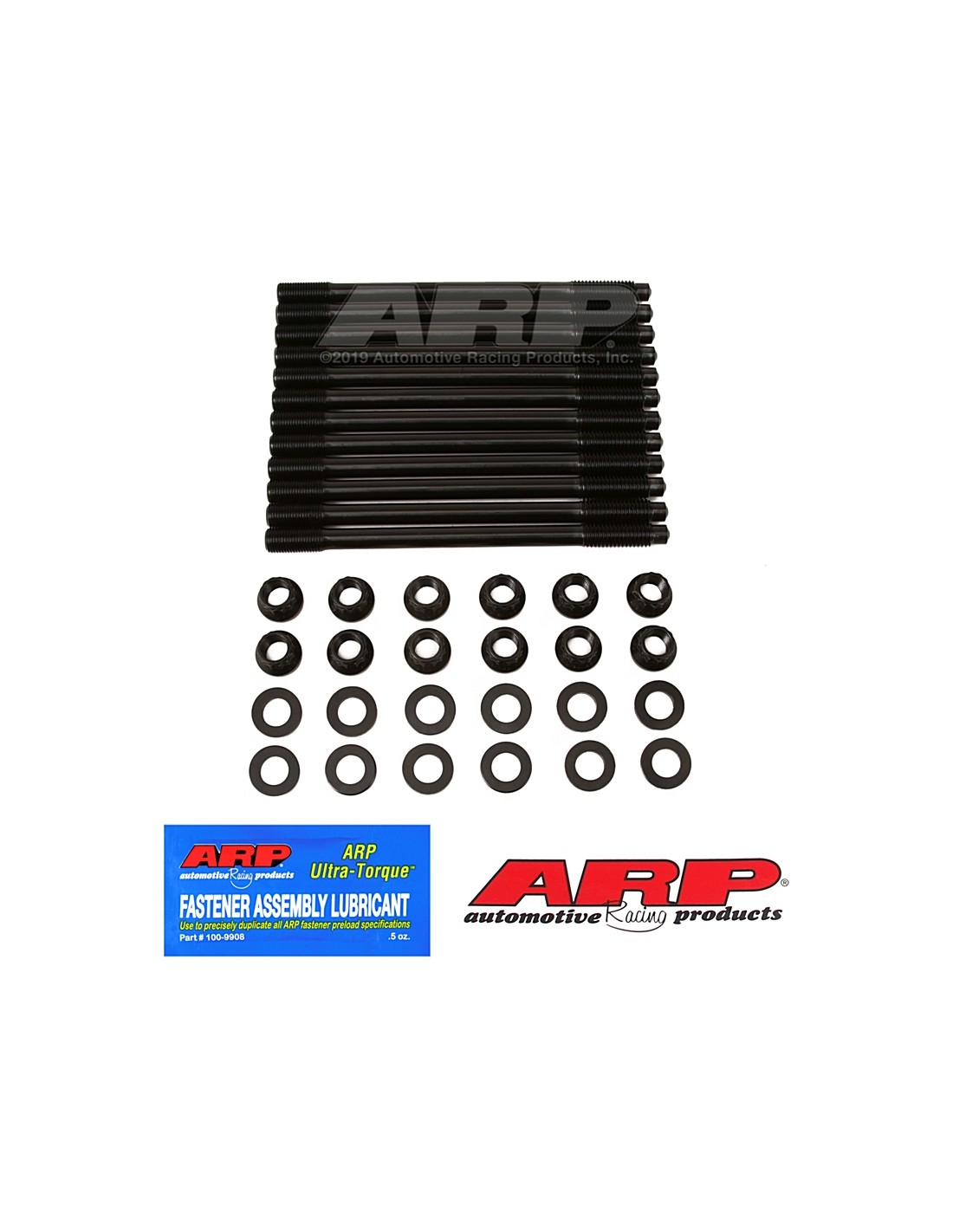 ARP Pro Series ARP2000 studs are centerless ground, heat treated prior to thread rolling and machining, and are nominally rated at 220,000 psi. These fasteners deliver a 40% increase in tensile strength over the OEM Torque to Yield (TTY) bolts. All bolts are precision centerless-ground and thread-rolled to Mil-S-8879 specs. Each utilizes a black oxide finish that protects them from wear and corrosion. All kits come complete with hardened parallel washers for even load distribution and accurate torque readings.