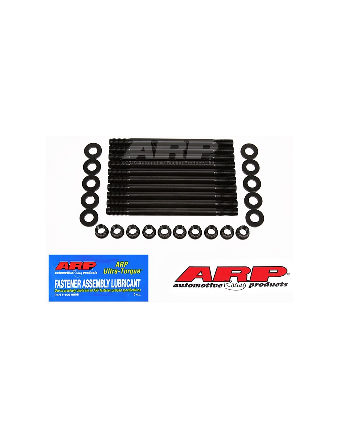 ARP main studs are manufactured from 8740 chrome moly steel, heat-treated to 200,000 psi tensile strength, and precision J-form threads rollad after heat-treat to create a fastener that has threads 2000% stronger than others. Reduce crankshaft flex and main cap fretting with these premium quality main studs. Don't settle for anything less than the best! Main Studs Key Features: •Premium grade 8740 chrome moly steel •200,000 psi tensile strength •J-form rolled threads •Come with parallel washers and nuts All kits come complete with hardened parallel-ground washers and aerospace quality nuts.