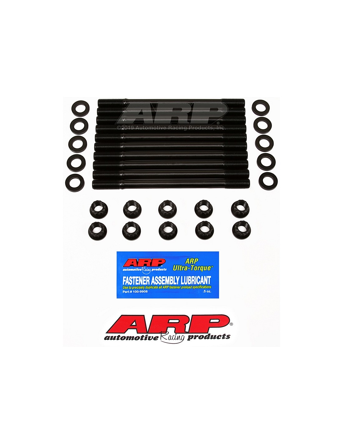 ARP main studs are manufactured from 8740 chrome moly steel, heat-treated to 200,000 psi tensile strength, and precision J-form threads rollad after heat-treat to create a fastener that has threads 2000% stronger than others. Reduce crankshaft flex and main cap fretting with these premium quality main studs. Don't settle for anything less than the best! Main Studs Key Features: •Premium grade 8740 chrome moly steel •200,000 psi tensile strength •J-form rolled threads •Come with parallel washers and nuts All kits come complete with hardened parallel-ground washers and aerospace quality nuts.