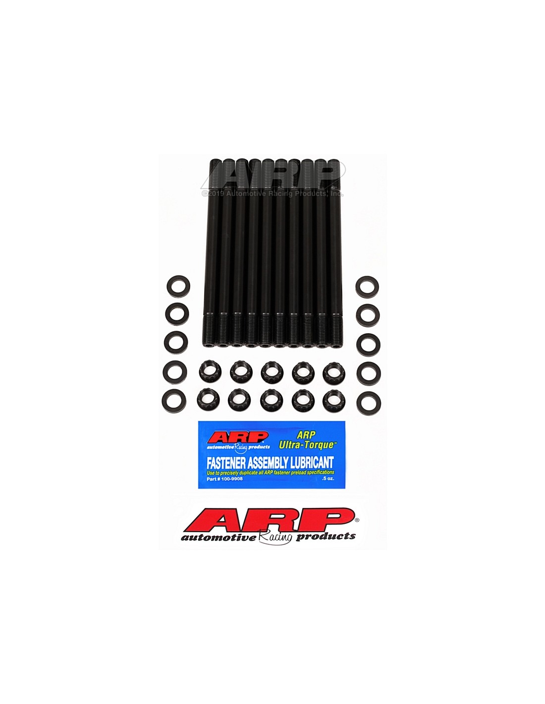 ARP main studs are manufactured from 8740 chrome moly steel, heat-treated to 200,000 psi tensile strength, and precision J-form threads rollad after heat-treat to create a fastener that has threads 2000% stronger than others. Reduce crankshaft flex and main cap fretting with these premium quality main studs. Don't settle for anything less than the best! Main Studs Key Features: •Premium grade 8740 chrome moly steel •200,000 psi tensile strength •J-form rolled threads •Come with parallel washers and nuts All kits come complete with hardened parallel-ground washers and aerospace quality nuts.